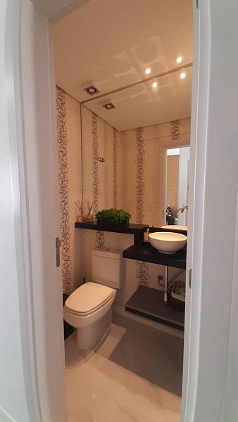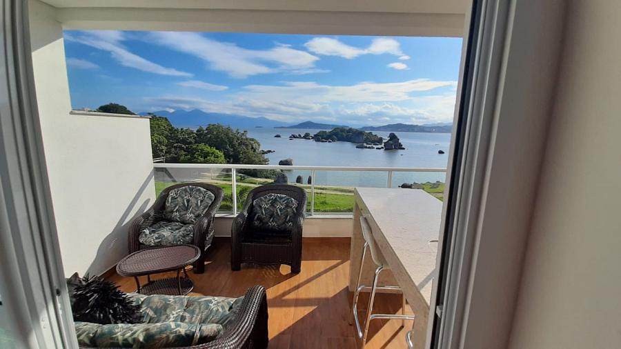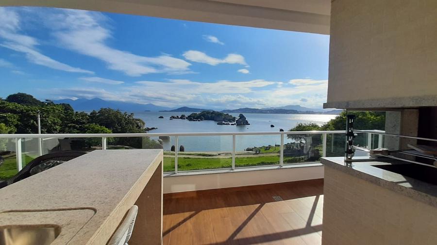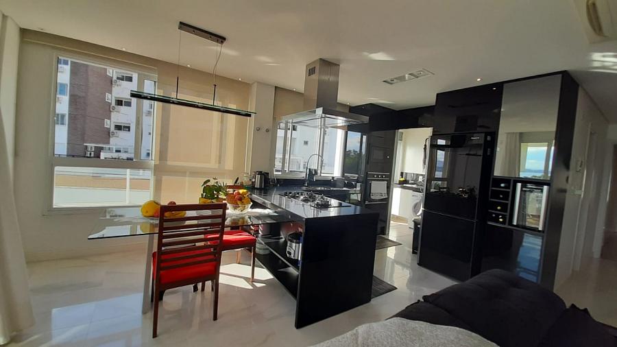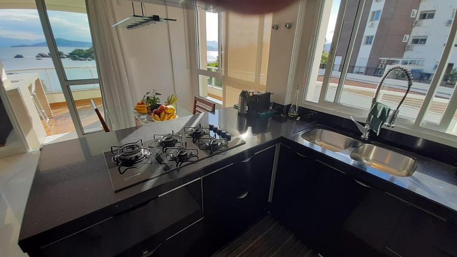 Apartamento com 3 suítes, living, terraço com churrasqueira, vista mar,  cozinha americana, armários planejados, área de serviço, espera para ar split,  piso porcelanato e laminado, 3 vagas de garagem e hobby box.